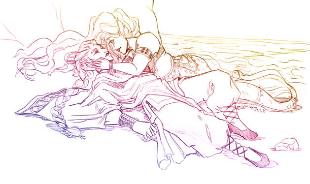 This is ideal for a larger background scene, as there is more page space to work with, without diminishing the size or detail of the characters.